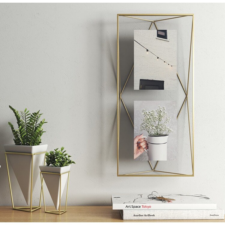 プリズム状のワイヤーフレームは、写真を2枚のガラスパネルの間に挟んで浮かせると同時に、フレームの前面からガラス越しにワイヤー構造が見えることで、ユニークで近代的なディスプレイを作り出します。