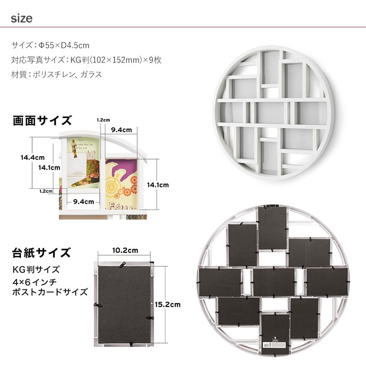 インパクトのある大きなフォトフレームフレームに、KGサイズの写真を9枚を飾る事ができます。