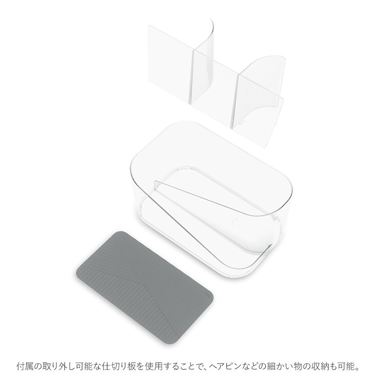 また、付属の取り外し可能な仕切り板を使用することで、ヘアピンなどの細かい物の収納も可能です。