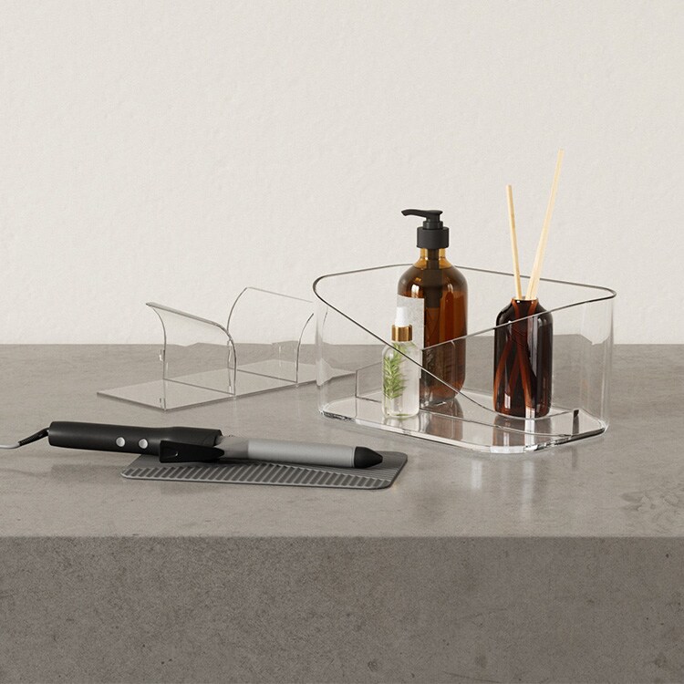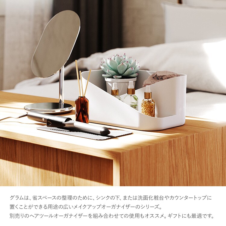 グラムは、省スペースの整理のために、シンクの下、または洗面化粧台やカウンタートップに置くことができる用途の広いメイクアップオーガナイザーのシリーズ。