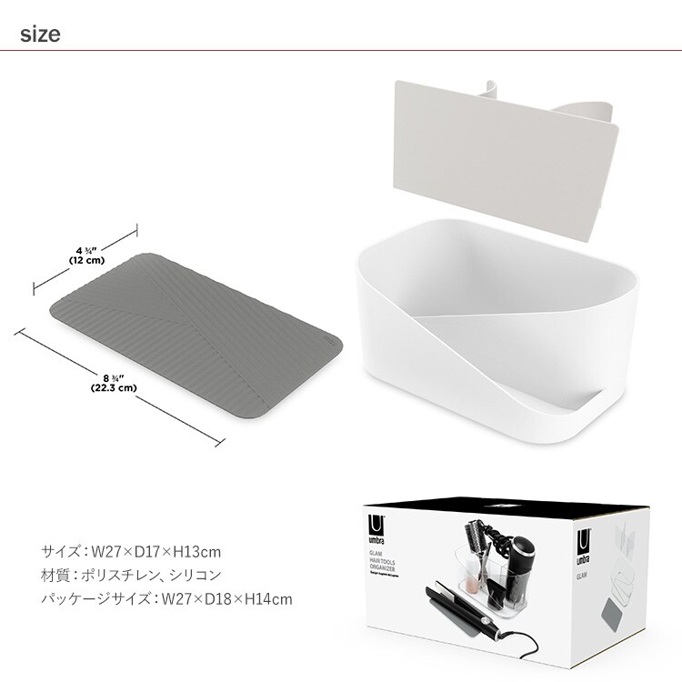 Umbra アンブラ グラム ヘアツール オーガナイザー ホワイト×チャコール ドライヤー ヘアアイロン 収納 ヘア小物 耐熱マット コスメ 化粧品 小物入れ 文房具 小物 シンプル おしゃれ 北欧 インテリア