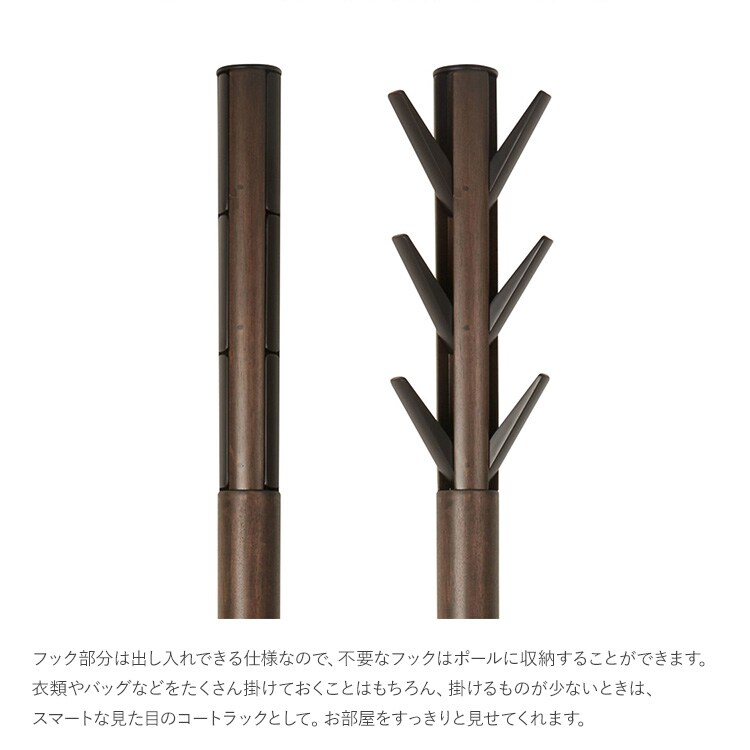 商品説明:丈の長いコートや衣類、帽子などなんでもさっと引っ掛けられるコートラック。