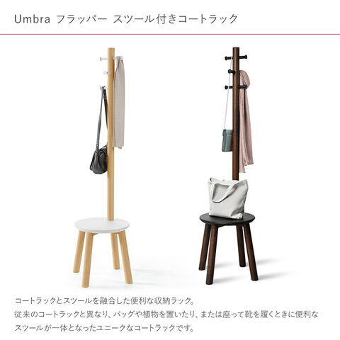Umbra アンブラ ピラー スツール コートラック ウォルナット コートハンガー ハンガーラック スリム 省スペース 木製 天然木 洋服掛け コート掛け イス 椅子 玄関 リビング 寝室 子供部屋 おしゃれ 北欧 インテリア