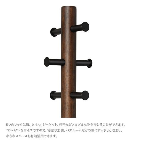 6つのフックは服、タオル、ジャケット、帽子などさまざまな物を掛けることができます。
