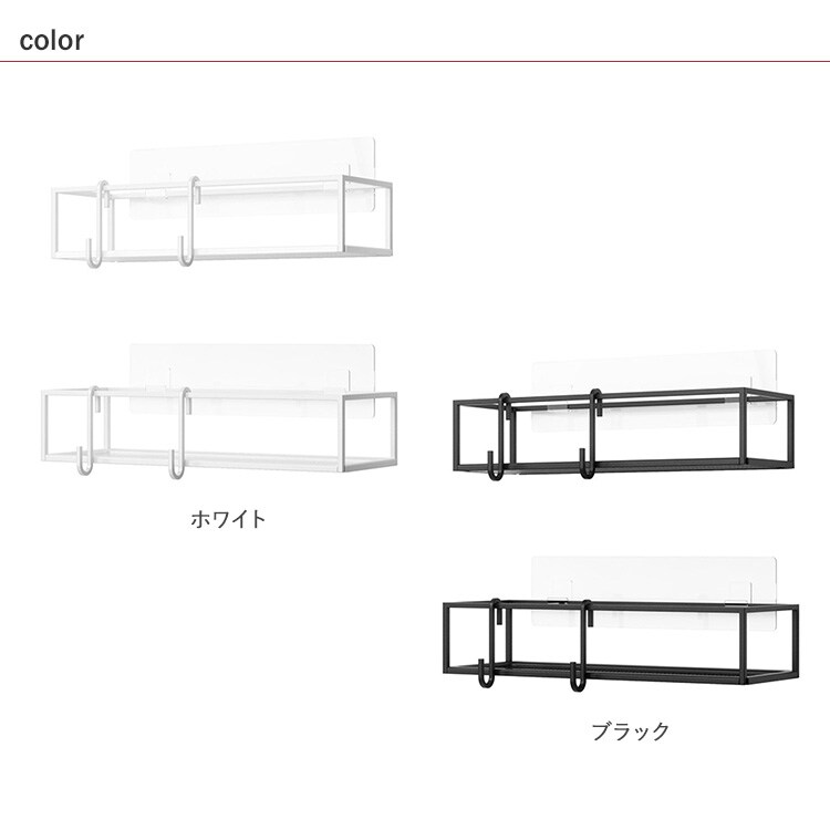 設置は付属の「フック付き接着シート」を壁に貼り、シートのフックにラックを掛けるだけ。