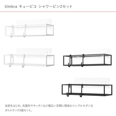 Umbra アンブラ キュービコ シャワービン2セット ブラック シャンプーラック 壁 ディスペンサーホルダー スパイスラック マルチ収納 キッチン 台所 お風呂 バスルーム 洗面所 洗面台 おしゃれ 北欧 シンプル