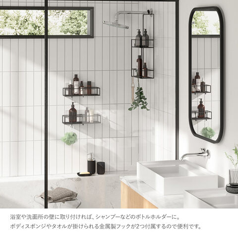 浴室をはじめ、洗面所やキッチンなど幅広い空間に馴染むシンプルモダンなボトルラック2個セット。