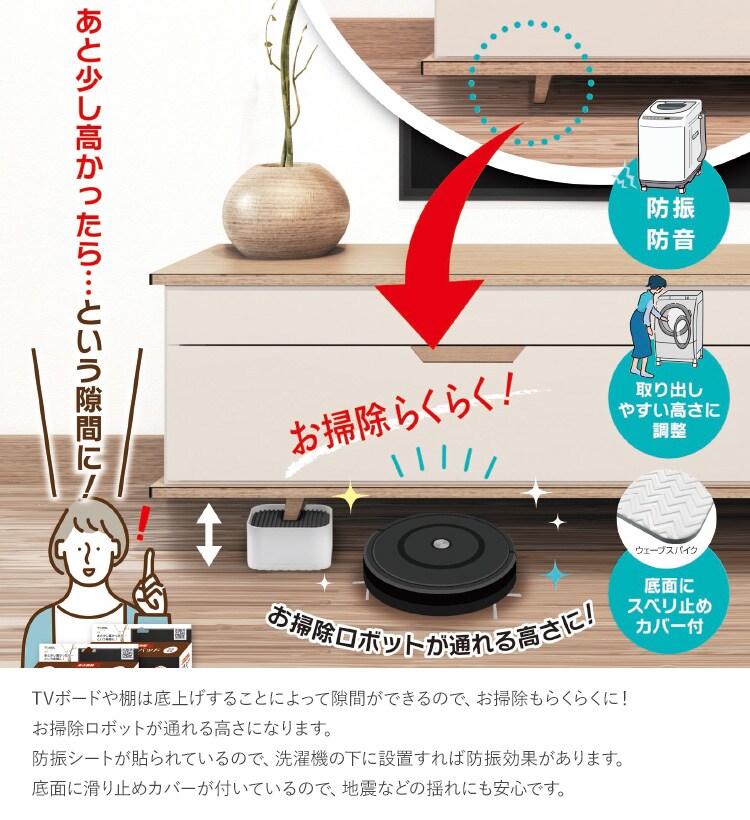 TVボード 、机、洗濯機、シェルフ、棚などの底上げにご利用いただけます。
