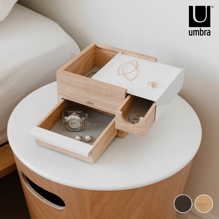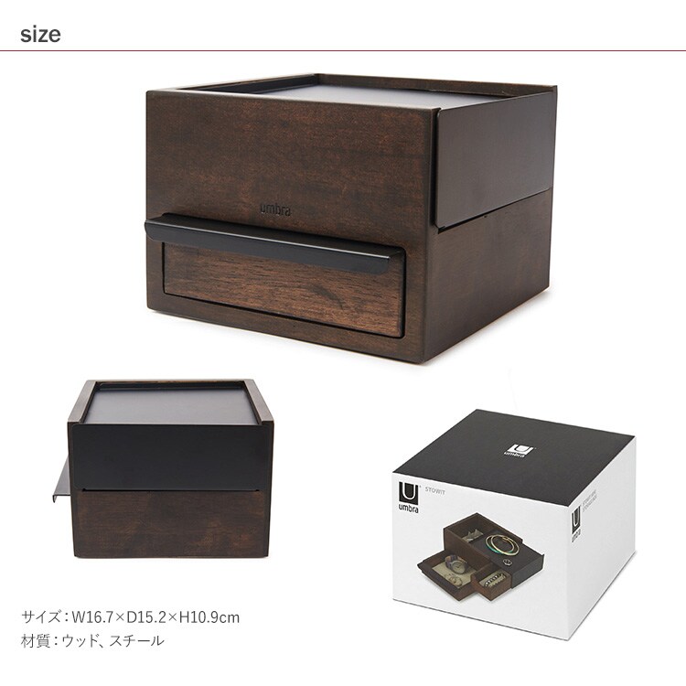 Umbra アンブラ ミニ ストウイット ジュエリーボックス ブラック×ウォルナット アクセサリーケース 木製 ジュエリーケース アクセサリーボックス 小物入れ イヤリング 時計 バングル ネックレス おしゃれ