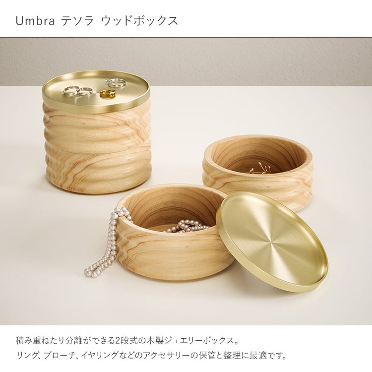 Umbra アンブラ テソラ ウッドボックス ナチュラル×ブラス アクセサリーケース 木製 ジュエリーケース アクセサリーボックス 小物入れ イヤリング ピアス リング 指輪 薬 小物 おしゃれ シンプル