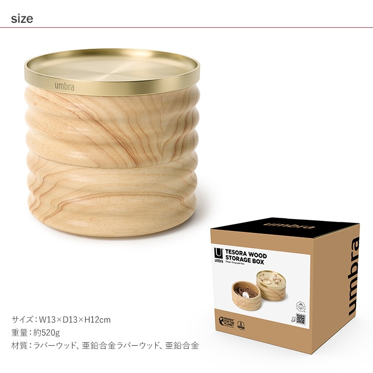 Umbra アンブラ テソラ ウッドボックス ナチュラル×ブラス アクセサリーケース 木製 ジュエリーケース アクセサリーボックス 小物入れ イヤリング ピアス リング 指輪 薬 小物 おしゃれ シンプルのレビュー