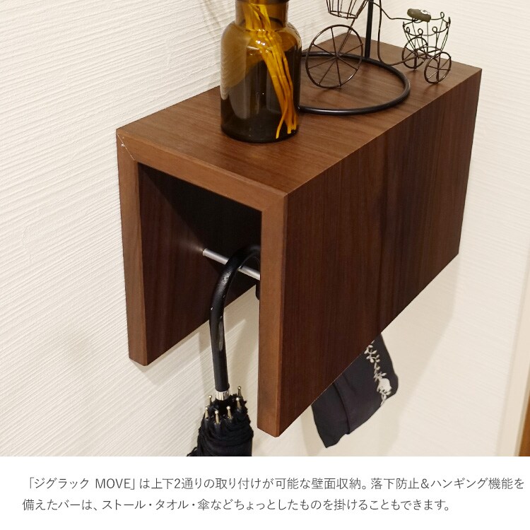 「ジグラック MOVE」は上下2通りの取り付けが可能な壁面収納。
