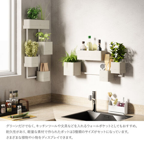 グリーンだけでなく、キッチンツールや文具などを入れるウォールポケットとしてもおすすめ。