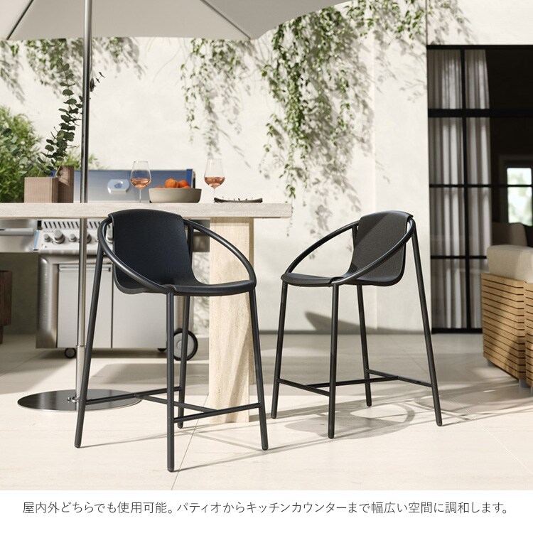 屋内外の幅広い空間に映えるデザインと実用性を兼ね備えたカウンタースツール。