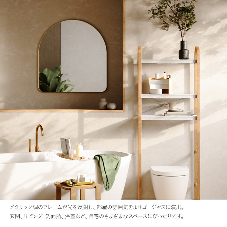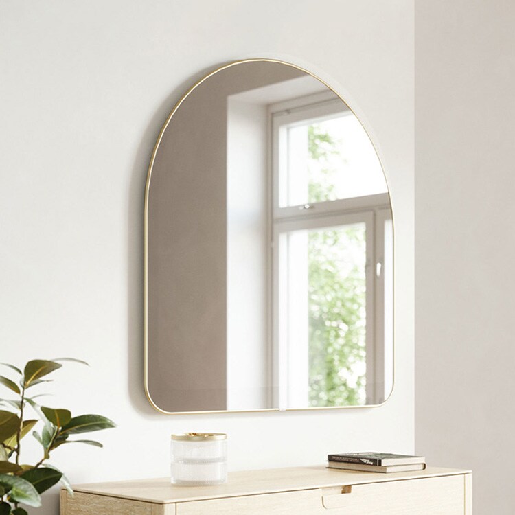 洗練されたメタリック調フレームと曲線美が特徴的な「フーバ アーチド ミラー 86×91cm」。