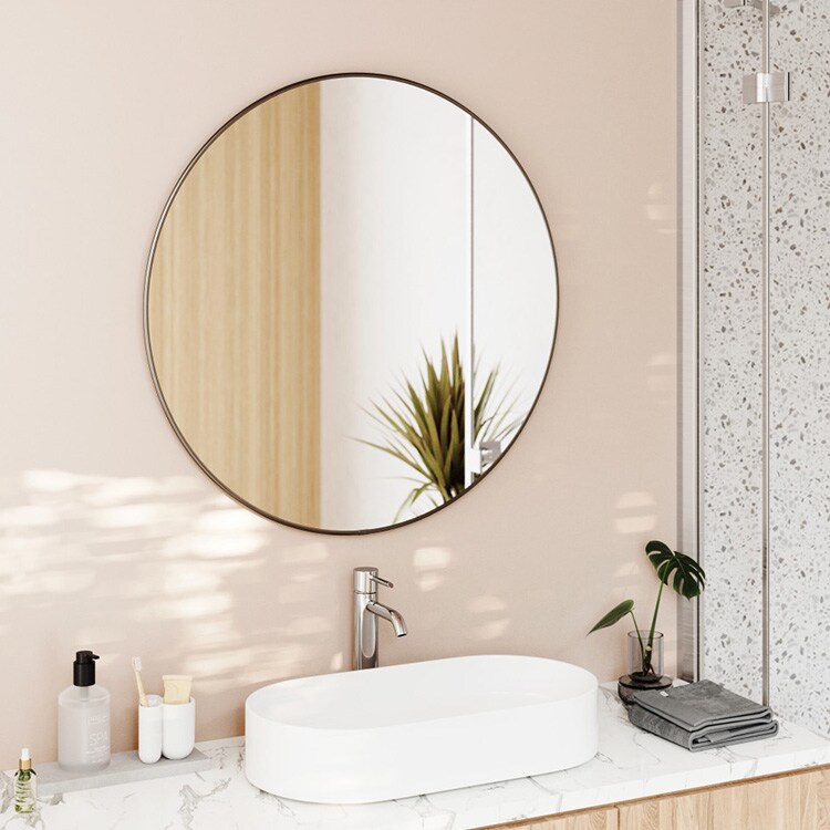 洗練されたメタリック調フレームと曲線美が特徴的な「フーバ ミラー 86×86cm」。