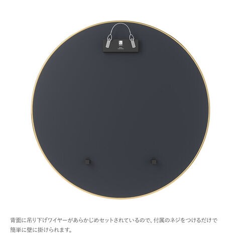 背面に吊り下げワイヤーがあらかじめセットされているので、付属のネジをつけるだけで簡単に壁に掛けられます。