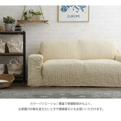 横ストレッチ素材なのでぐーんと伸びてソファにぴったりとフィットします。