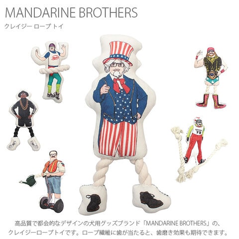 ■備考:高品質で都会的なデザインの犬用グッズブランド「MANDARINE BROTHERS」の、クレイジーロープトイです。ロープ繊維に歯が当たると、歯磨き効果も期待できます。