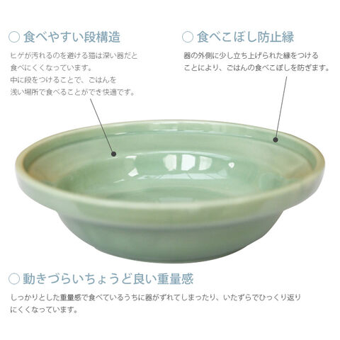 ヒゲが汚れるのを避ける猫は深い器だと食べにくくなっています。中に段をつけることで、ごはんを浅い場所で食べることができ快適です。
