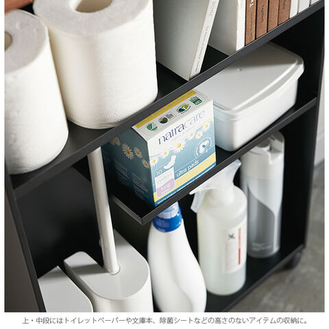 スリムなデザインで、トイレ用品をスマートに収納することができます。