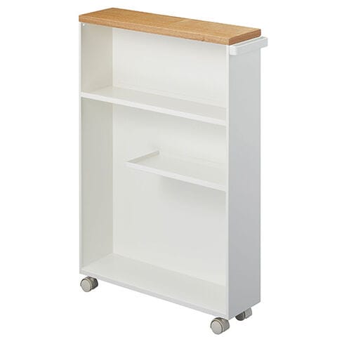 山崎実業(Yamazaki) ハンドル付き スリム トイレラック ホワイト 約W13XD47.5XH68.5cm タワー【本体完成品:キャスターのみお客様取り付け 】 トイレットペーパーホルダー 4306