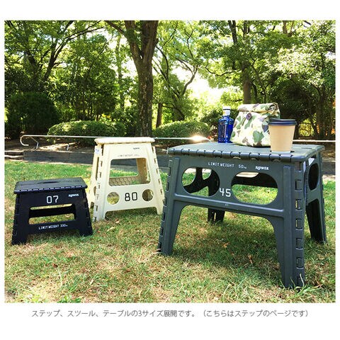 ・ステップ、スツール、テーブルの3サイズ展開です。(こちらはステップのページです)・同ブランドのトランクキャリーに収納して持ち運びができます。