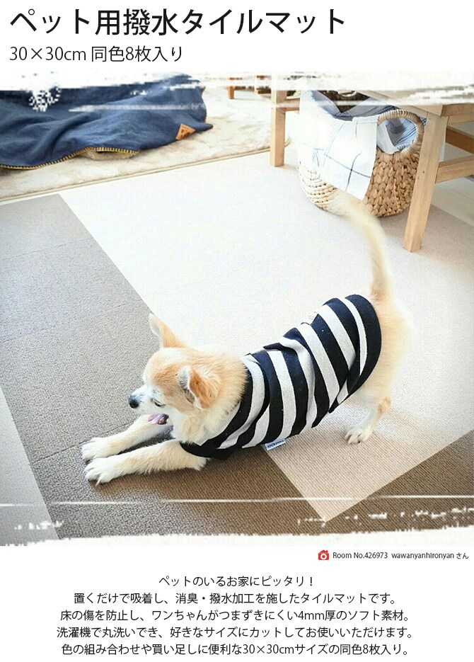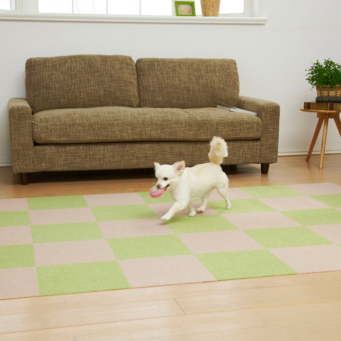 くだける 吸着 ペット 用 撥 水 タイル マット 8 枚 入 グリーン