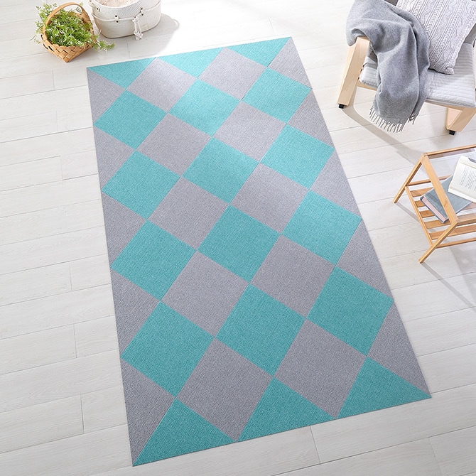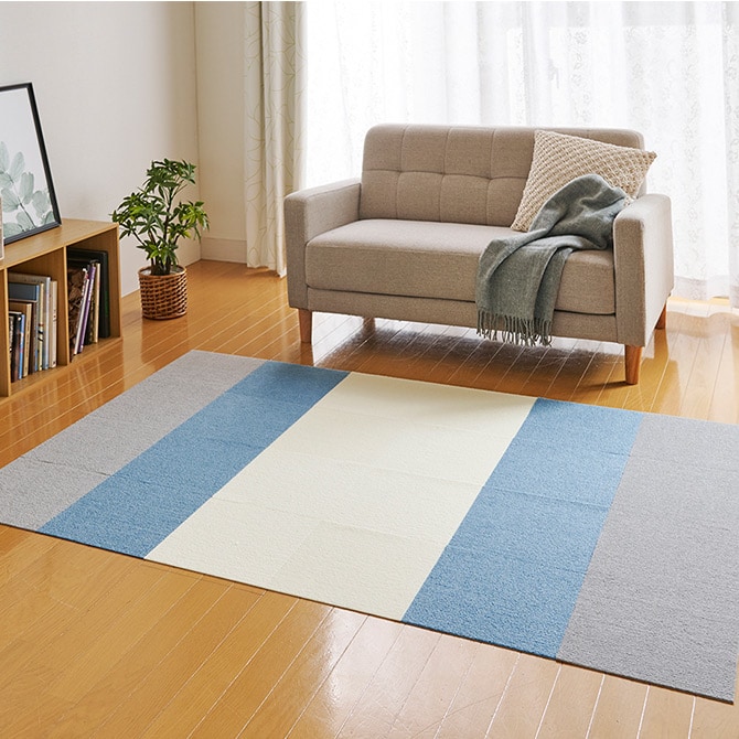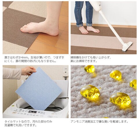 置くだけで吸着し、消臭・撥水加工を施したタイルマットです。