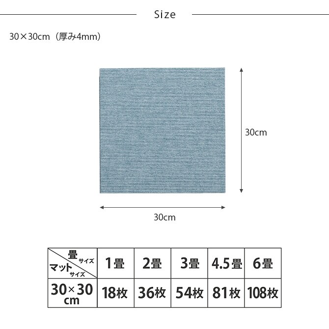 色の組み合わせや買い足しに便利な30×30cmサイズの同色8枚入り。