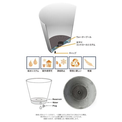 独自の排水・吸水システムにより、直植えの自然環境に近い状態を保つことのできる便利なプランターです。