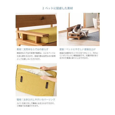 こちらは犬と一緒に暮らしている方におすすめな、ご家庭でお洗濯ができ、ひっかきにも強く、また撥水性や防臭効果のある生地などを使用しております。