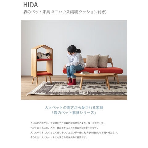 HIDA ヒダ 森のペット家具 ネコハウス(本体+クッション2個セット) ダークグレー(T7188)