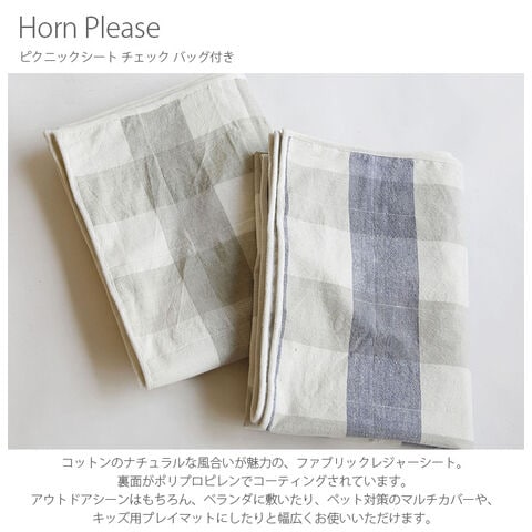 Horn Please ホーン プリーズ ピクニックシート チェック バッグ付き ブルー