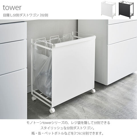 tower タワー 目隠し分別ダストワゴン 3分別 ホワイト