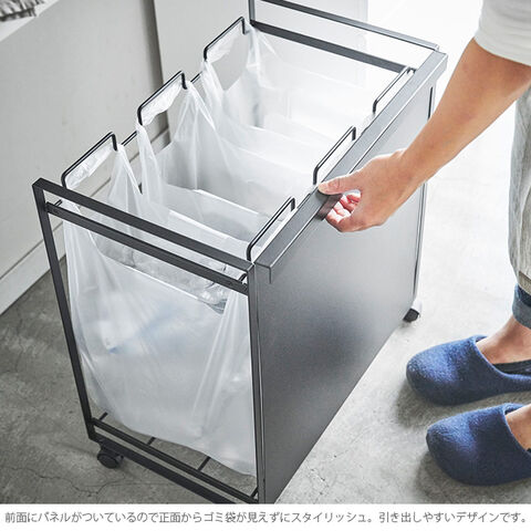 ・前面にパネルがついているので、正面からゴミ袋が見えずにスタイリッシュ。引き出しやすいデザインです。