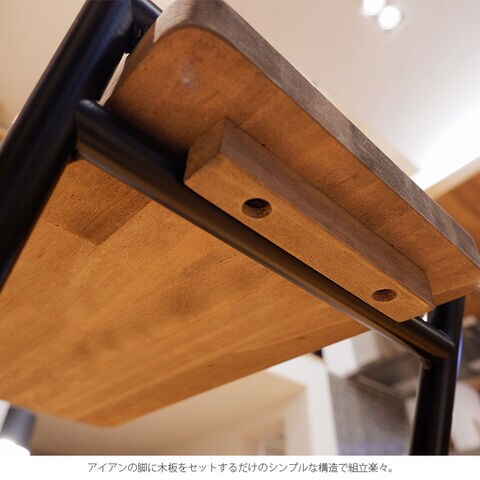 ・アイアンの脚に木板をセットするだけのシンプルな構造で組立楽々。