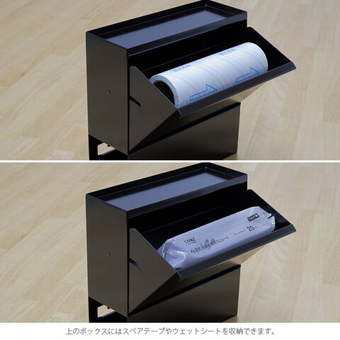 上のボックスにはスペアテープやウェットシートを収納できます。