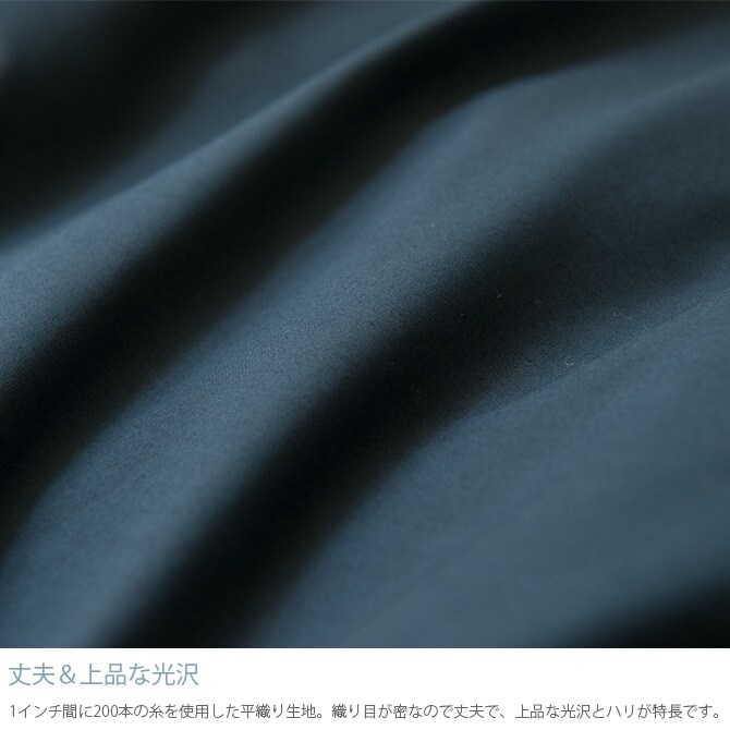 1インチ間に200本の糸を使用した平織り生地。織り目が密なので丈夫で、上品な光沢とハリが特長です。