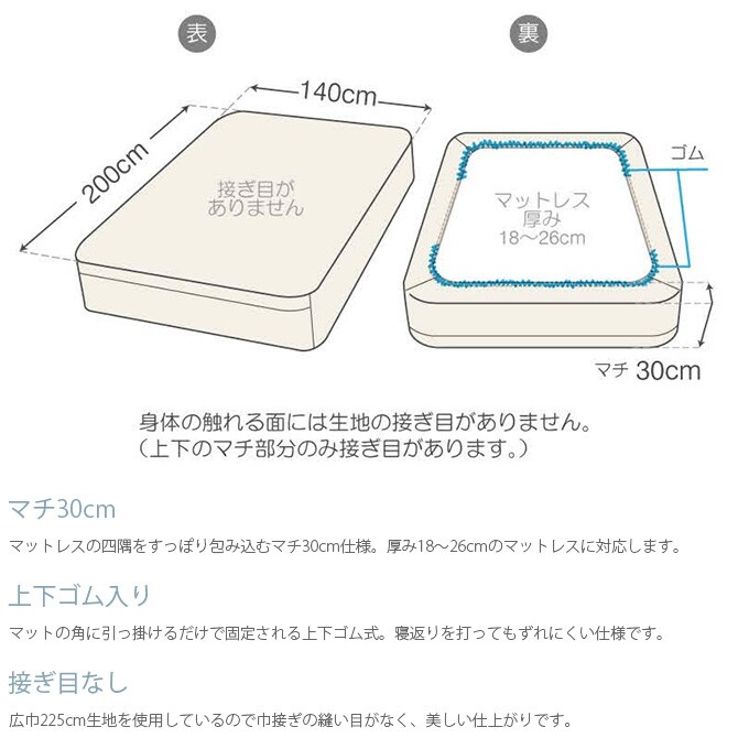 ■商品サイズ:140×200×30cm(上下ゴム)