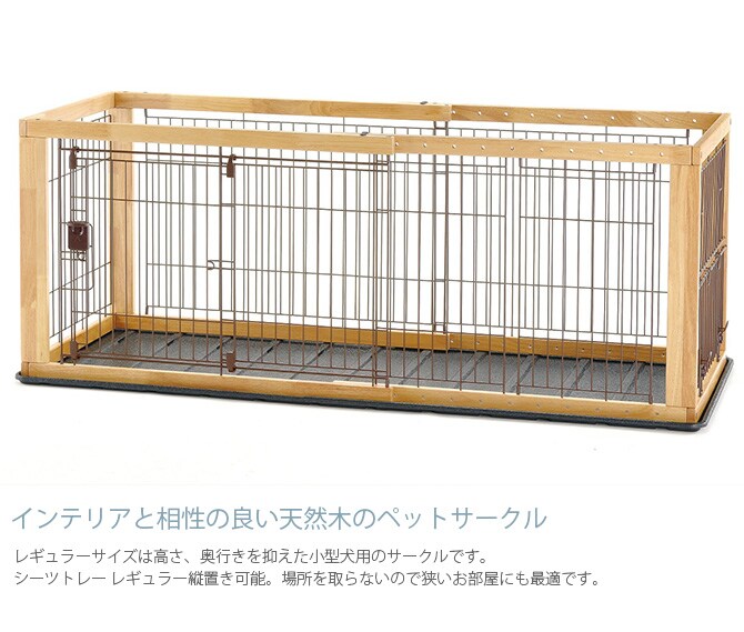 インテリアと相性の良い天然木のペットサークルです。レギュラーサイズは小型犬(体重目安4~12kg)におすすめです。