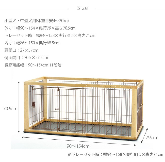 インテリアと相性の良い天然木のペットサークルです。ワイドサイズは小型犬・中型犬(体重目安4~20kg)におすすめです。