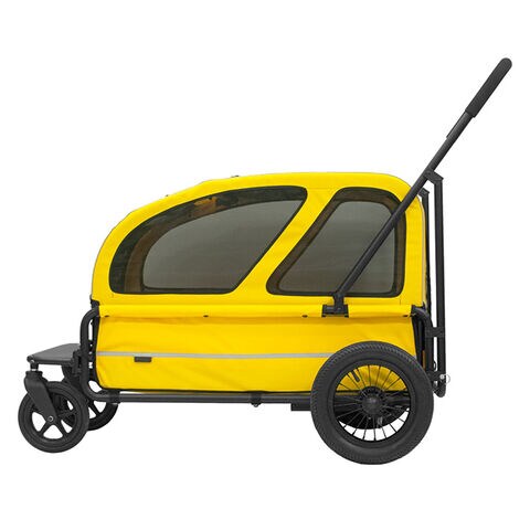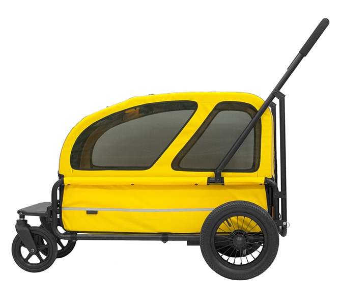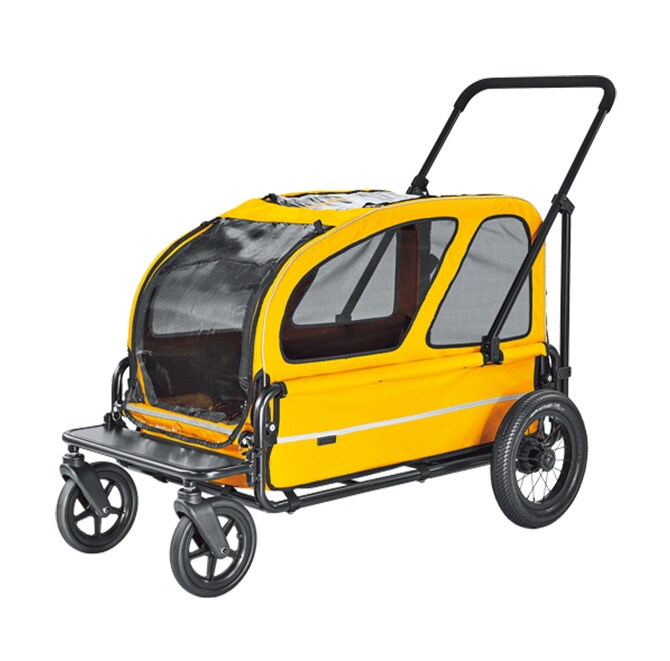 愛犬が開放的に乗ることができるオープンタイプで、荷物が多い時は台車としてもご使用いただけます。