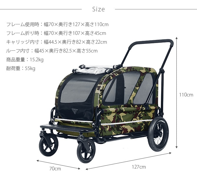 ■備考:大型犬用に開発された耐荷重55kgの4輪カートとルーフがセットになりました。