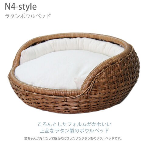 N4-style ラタンボウルベッド  猫用 ベッド ペットベッド ラタン ナチュラル ブラウン 上品 可愛い シンプル
