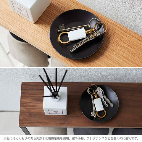 ・天板にはぬくもりのある天然木化粧繊維板を使用。鍵や小物、フレグランスなどを置くのに便利です。