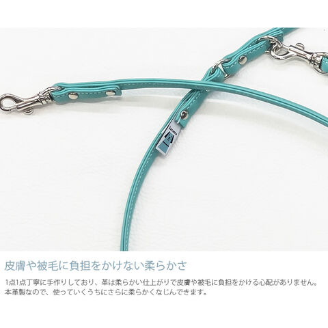 ・1点1点丁寧に手作りしており、革は柔らかい仕上がりで皮膚や被毛に負担をかける心配がありません。