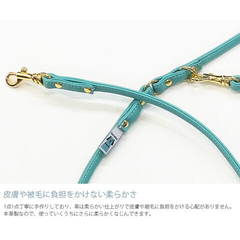 ・1点1点丁寧に手作りしており、革は柔らかい仕上がりで皮膚や被毛に負担をかける心配がありません。