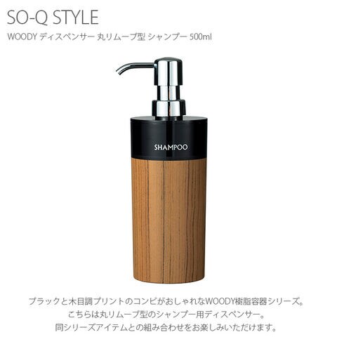 SO-Q STYLE ソーキュースタイル WOODY ディスペンサー 丸リムーブ型 シャンプー 500ml ブラック×チーク