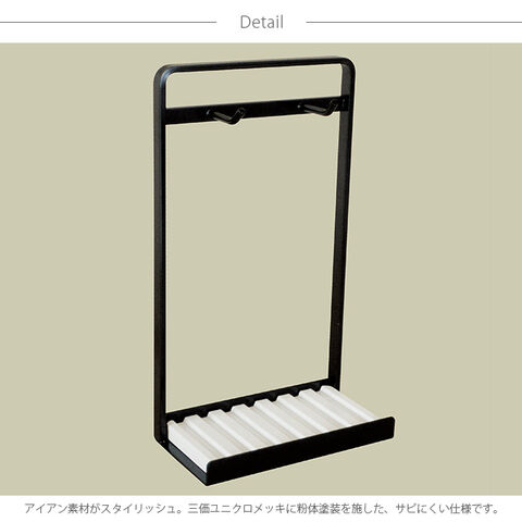 ・アイアン素材がスタイリッシュ。三価ユニクロメッキに粉体塗装を施した、サビにくい仕様です。